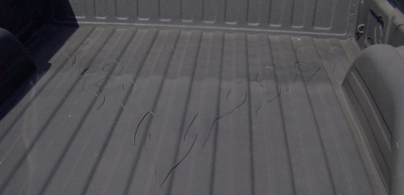 Painted handles & lower valance, Shaved tailgate, SM rollpan, Flamed LINE-X bed with TWO layers of stuff, NO,foam cut outs!