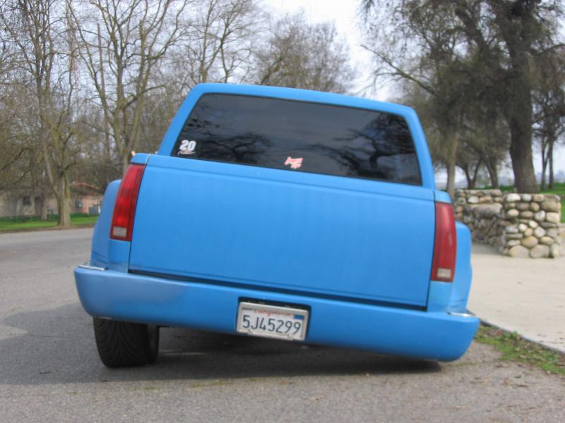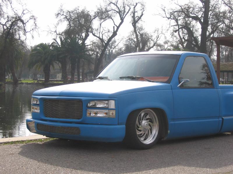 Body: cat eye grill, smooth front bumper w/ billet grill insert and frenched license plate tilted, grill in bumper has corners rounded to match GMC grill, billet grill, clear headlights and front corners, smooth cowl, billet steps, some billet and chrome under the hood