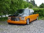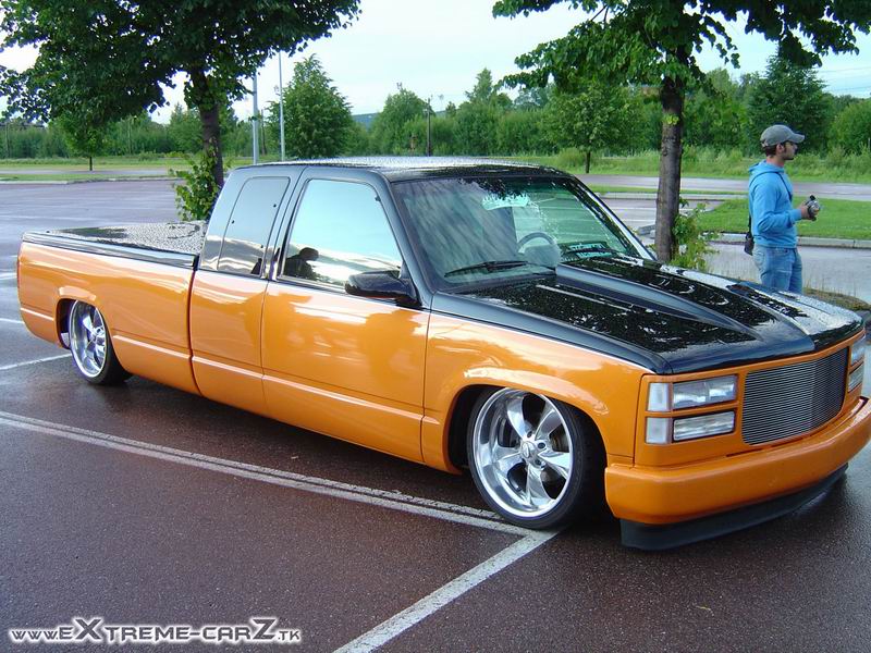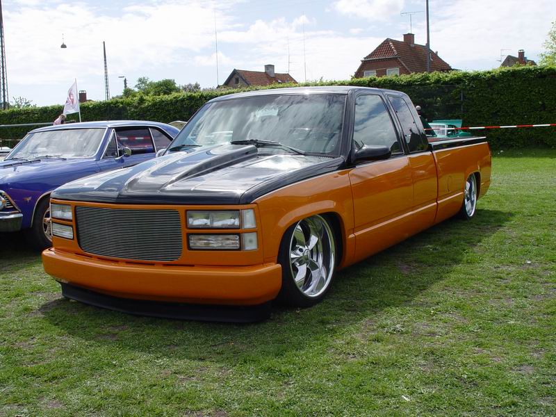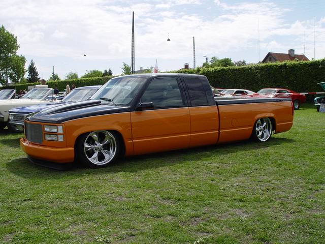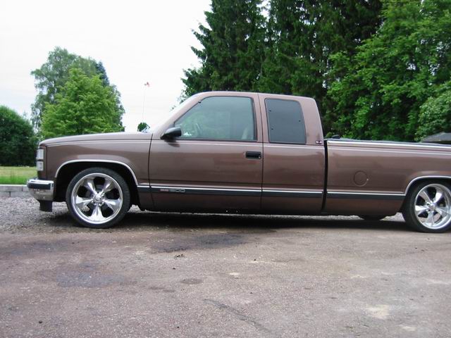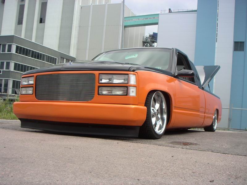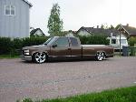 Bagged in all 4 corners. Art coolride kit with control arms up front and ART parallell 4-link with HAL shocks in the back. 4 way setup. 1/2 inch lines in entire setup with ART Big Red valves. Engine driven York comp. A 6 gallon tank with 8 3/8 ports under the bed and a 24 gallon tank with 3 1/2 inch ports in the bed. Custom made c-notch. Lays frame.