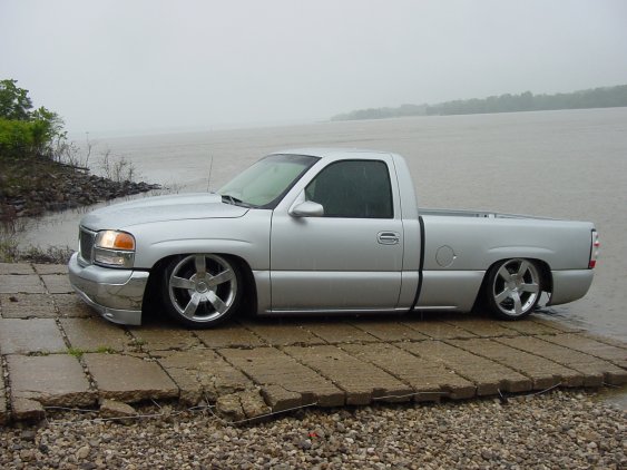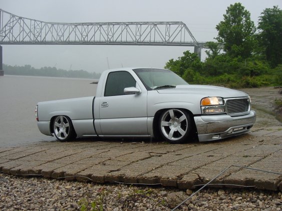 volkswagon jetta silver, cowl hood, escalade handles, molded in roll pan , shaved tailgate handle, billet insert grill, SS mirrors