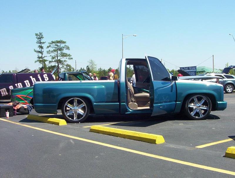 Pioneer Premier head unit, 2 memphis power reference 12's pushed a rockford fosgate power BD 1000, crossfire 6 1/5" componet sets pushed by a rockford fosgate 250, 5" screen molded in passenger airbag position ran to a PS2 in custom center console, 2 batterys under the hood powers all!