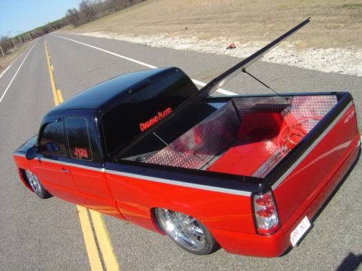 This truck has been custom painted including door jambs, between cab and bed, and inside the bed and tailgate as well. It has no problem laying out the Denali frontend and tucking 22" wheels.