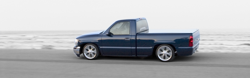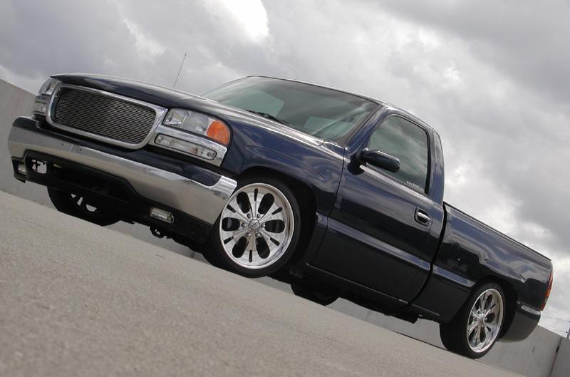 Escalade handles, shaved tailgate, Sir Michael's rollpan, fiberglass ARE Lo-Pro lid, billet grille, painted bumper trim/valance, cleared headlights, 2003 tailights