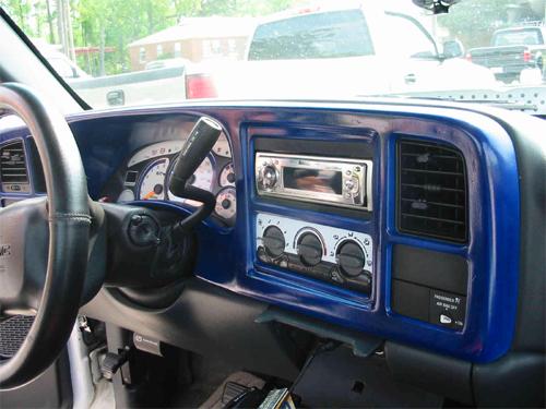 leather, white face gages, some billet, billet flammed mirror, nice stereo, misc smoothed and painted pieces