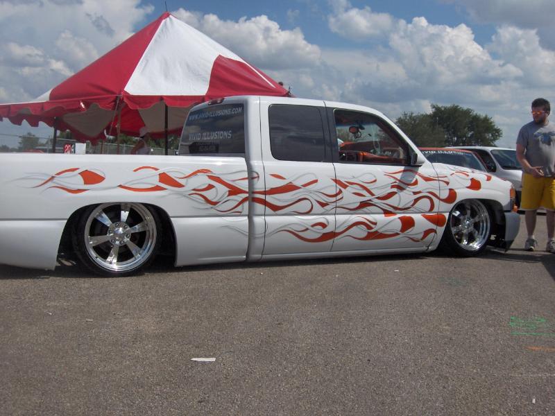 riight now it is re-tore down....just finished the '98 cadillac deville tail lights.... bout to start settin up for 24's! Future paint includes: throwin out the flames...2 tone (involving a badass gun-metal gray)! Should be done by mid November!