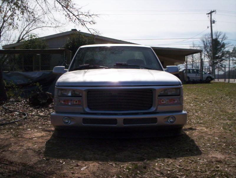 shaved door handles and tailgate handle, frenched antenna, cateye grill, teardrop bumper, welded in roll pan sprayed with HOK Orion Silver