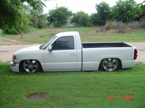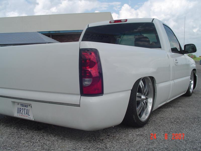 billet grille, painted grille shell, painted handles/mirrors, shaved tailgate, rollpan.