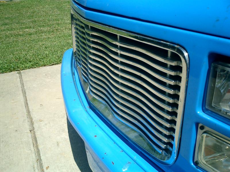 HPD BLUE , SHAVED HANDELS , CADILLAC TAIL LIGHTS , TILTED LIC. PLATE , COWL HOOD , CUSTOM BILLET GRILL
