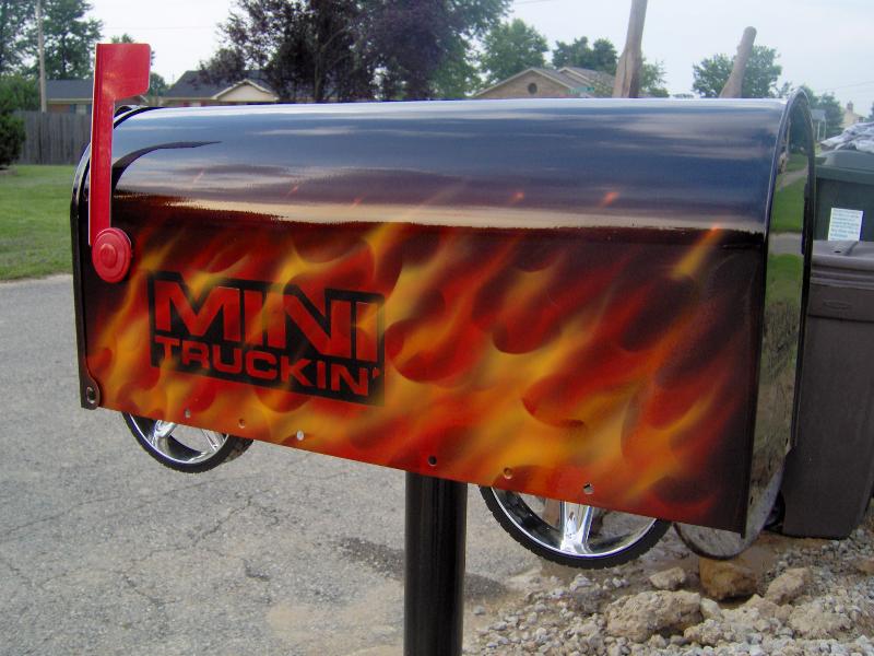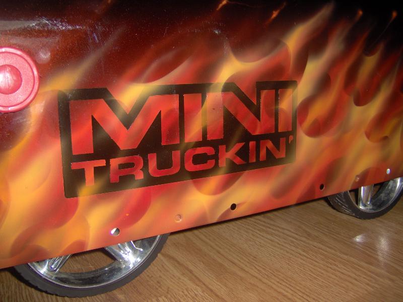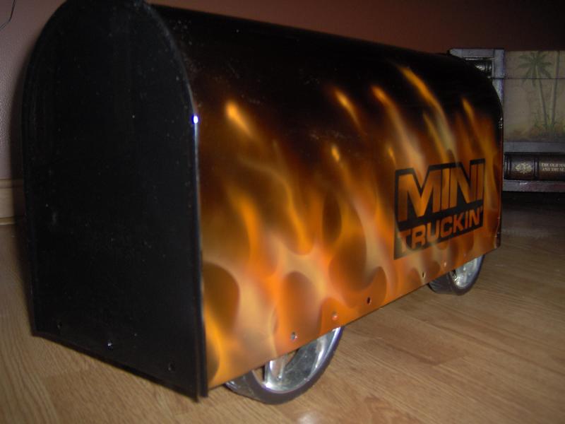 black with real flames airbrushed and minitruckin mag logo inserted into flames.