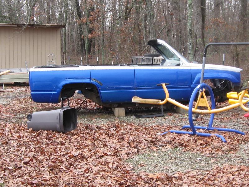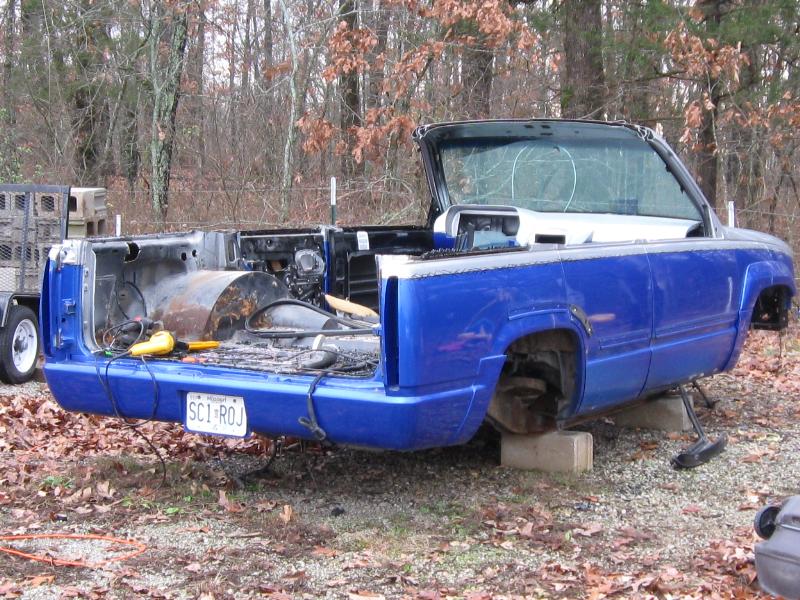 shaved everything, Under construction, Chopped off roof, still need to grind it down some and chop the windshield down