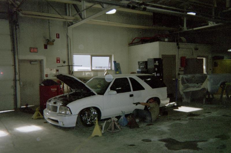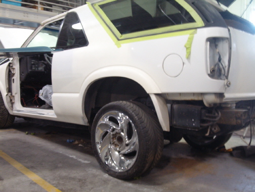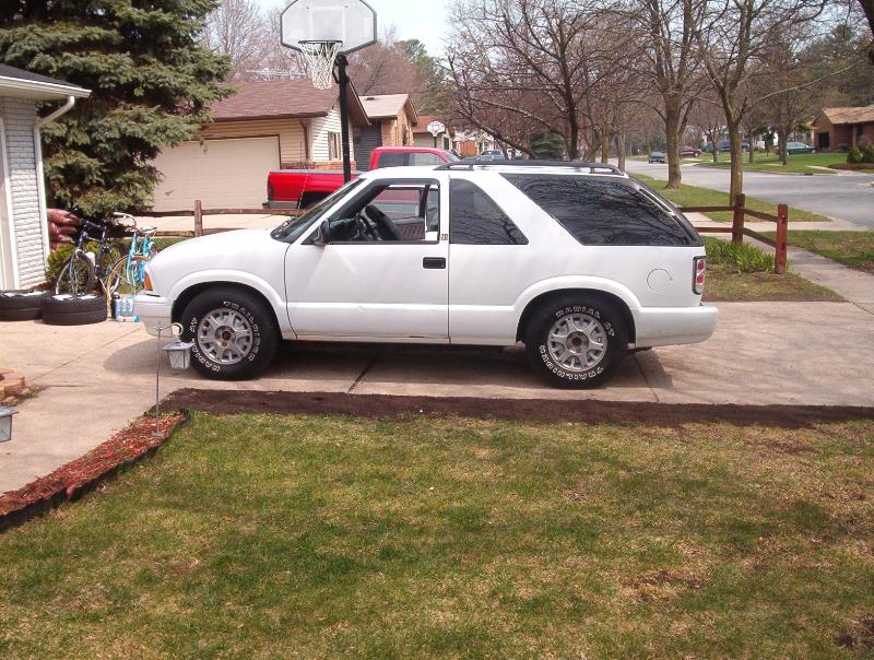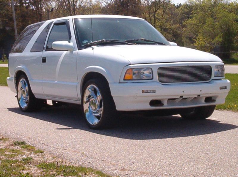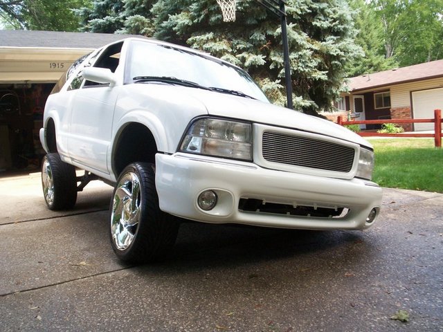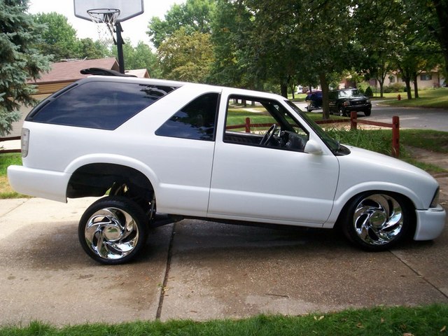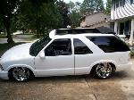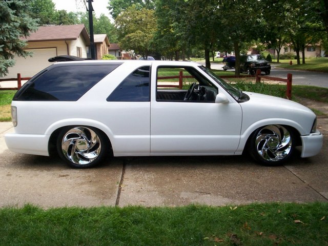 shaved handles, antenna, roof rack, tailgate, relocated 3rd brake light. '98+ headlights, billet grill, Envoy bumper, Cal-Vu Mirrors, 37.5" x 68" ragtop
