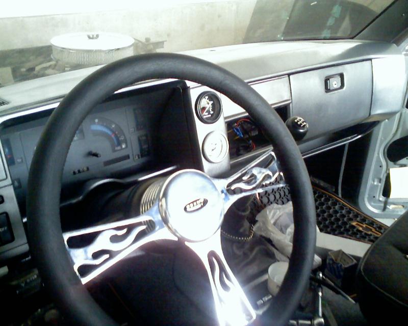 Smoothed and painted dash, Grant wheel, custom center console, bucket seats