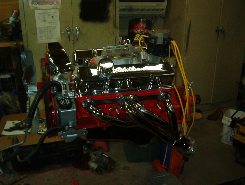350 bored .40 over, 400 heads milled 20 thousanth and machined for 202 stianless valves,Edelbrock performer cam,lifters,intake, and carb. Hooker comp headers and a lot of chrome you wont even hardly see. 700R4, flowmasters