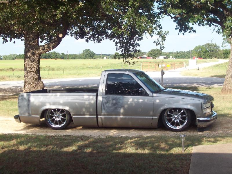 Lays full frame, half inch line, parker valves, 2 6 gallon tankes, and 2 viair 250 compressors. Rearend will hold 24's.