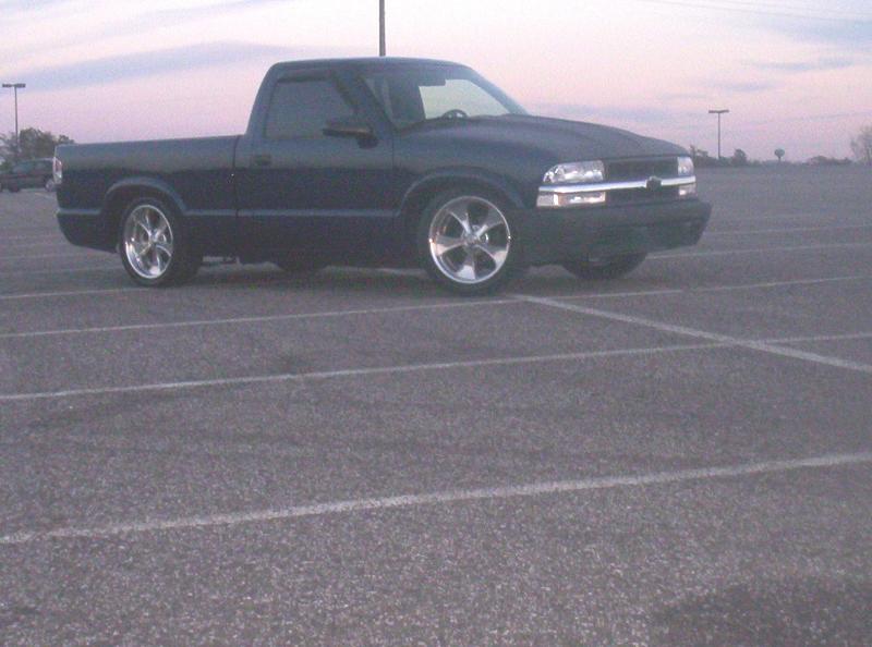 shaved antenna, tailgate, hood pissers, rain drips and 3rd brake lite, molded FBI roll pan, tag in tailgate, s10 front end conversion,