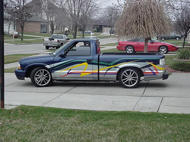 Bravada front end conversion(almost complete), Shaved taillights with a lights in roll pan(not pictured), Tribal Window Tint, and sublime green paint.