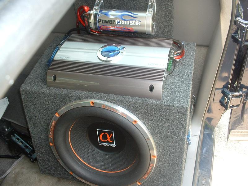 15 inch Alphasonik 600series powered by vx1400 planet audio amp, 1 farad power acoustik capacitor