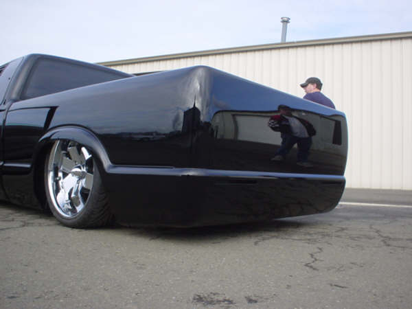 Shaved doors, antenna, 3rd break light, gas tank door, gas tank door relocated to bed with custom gas filler door, tail lights, tailgate skin, wiper cal, 4inch cal hood, LED tail lights