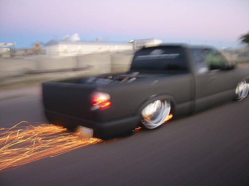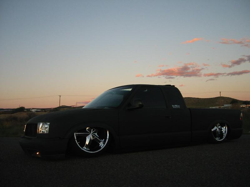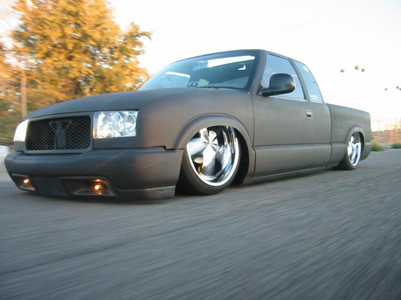 SHAVEING EVERYTHING BUT DOOR HANDLES AND TAILLIGHTS FOR NOW, 37"X40" SLIDING RAG,EXCURSION PROJECTOR HEADLIGHT CONVERSION, CUSTOM WATER JETED GRILL, ENVOY FRONT BUMPER, SPORT MIRRORS, SHEET METALED BED, FUEL CELL, AND MOLDED ROLL PAN