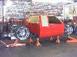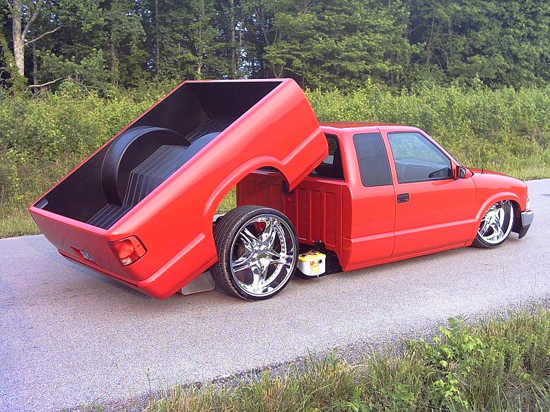 3-link, 2800 lb bags all the way around, 80 psi ride hieght and that is untucking a 24, Suicide arms up front, dump bed, Oasis XD 3000, SSBC 13" brakes in front, disc brake conv. in rear