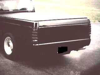 Factory paint (buffed and detailed),East Coast Customs front bumper cover (contoured to match grille shell), factory front spoiler w/factory fog lamps, full phantom billet grille (NEW!!), Syclone power side view mirrors (installed w/all factory hardware, including switches-looks stock), TekStyle tonneau, full carpeted bed, taillight covers, flush (ALL METAL) tailgate (w/S10 Blazer skin - all factory spot welds retained - looks stock) with flush LED 3rd brake light (just below bodyline) and reversed handle, Bell Tech roll pan with custom dual plate lights
