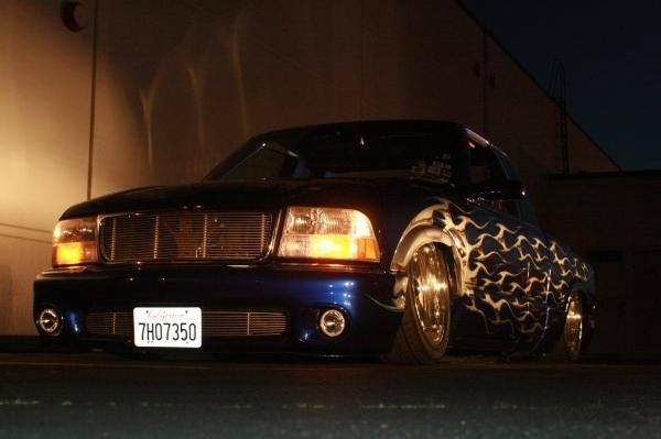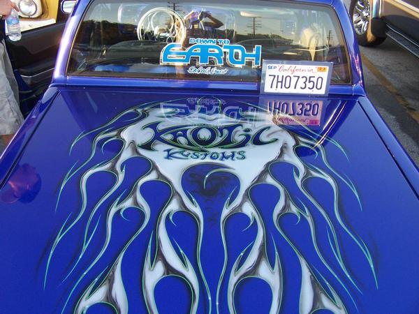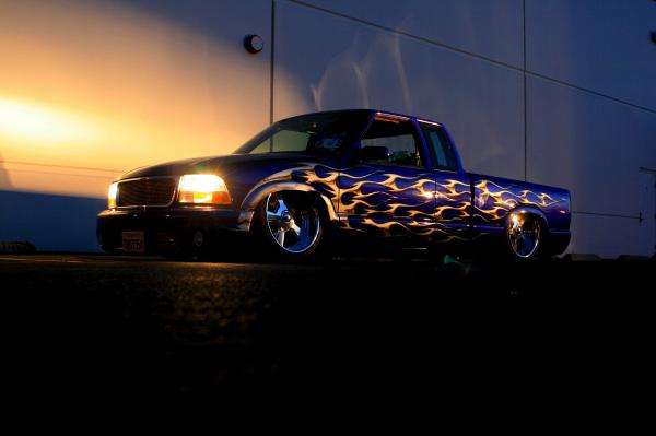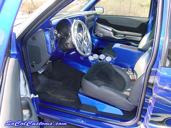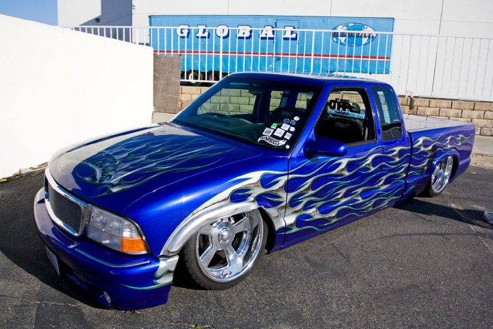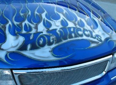 Blue with silver flames