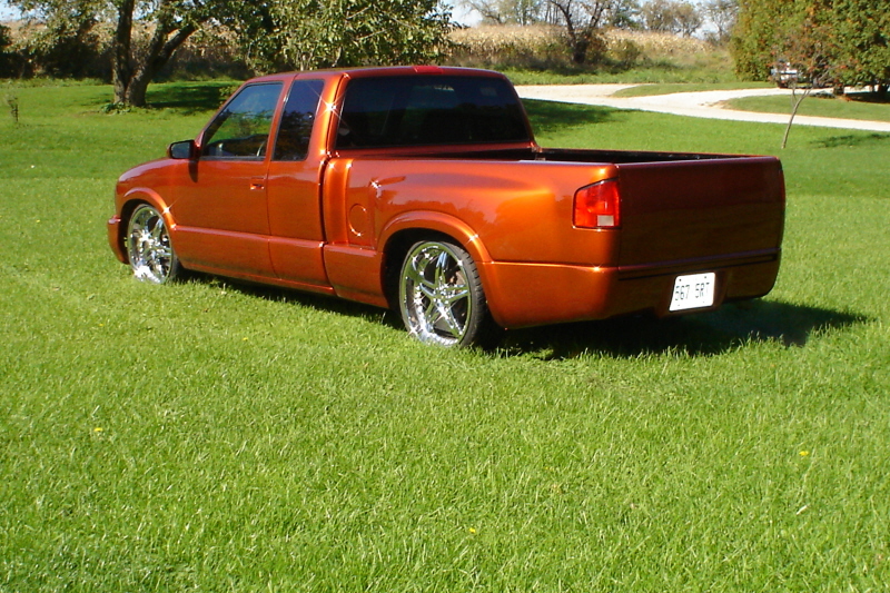 Shaved front and rear steps, roll pan shaved gate Envoy front end conversion, billet upper and lower grille and painted mopar GoManGo (colour of new daytona chargers)
