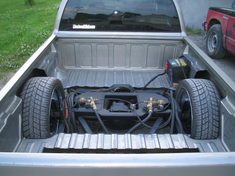 Lay on frame,Lumberjack Custom 4-link, customise the A-arm Front set-up: Dual ported Airlift Extreme 300psi Airbags, Up: 2x 3/4" SMC Valves per airbags, Down: 1x 1/2" SMC Valves per bags, Rear set-up: Universal 9"travel Airbags, Up: 1x 3/8 SMC Valves per bags, Down: 1x 1/2 SMC Valves per bags, 2x 8.5 gallon tank, 2x Viair 450 series