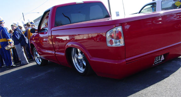 Finish the bed in tweed and mount stereo equipment. Billet Wiper post covers.