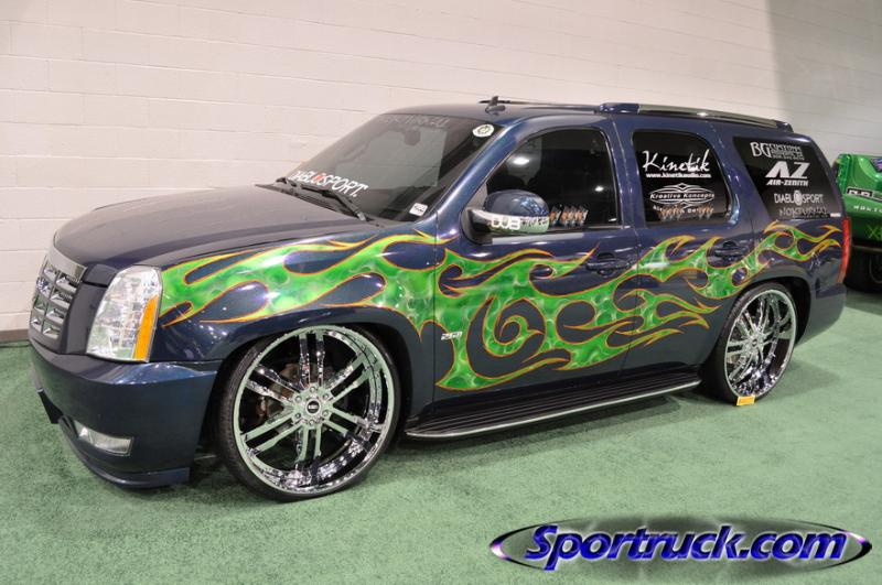 09 cadillac front end conversion, and back conversion, repainted house of kolor lime green with 6 ice pearls over