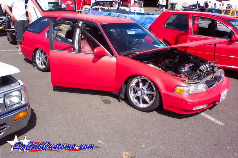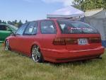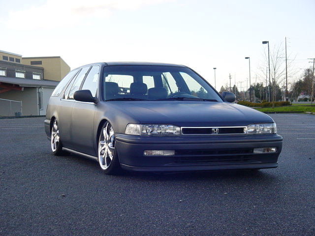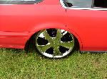 Custom mounts, shaved wishbone and cut strut tower for more drop.