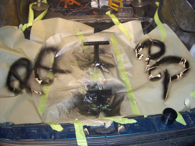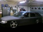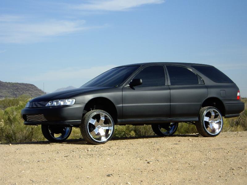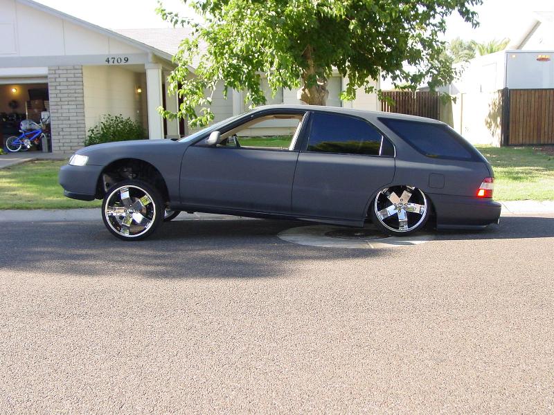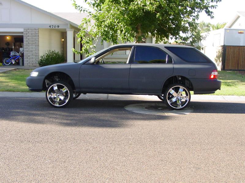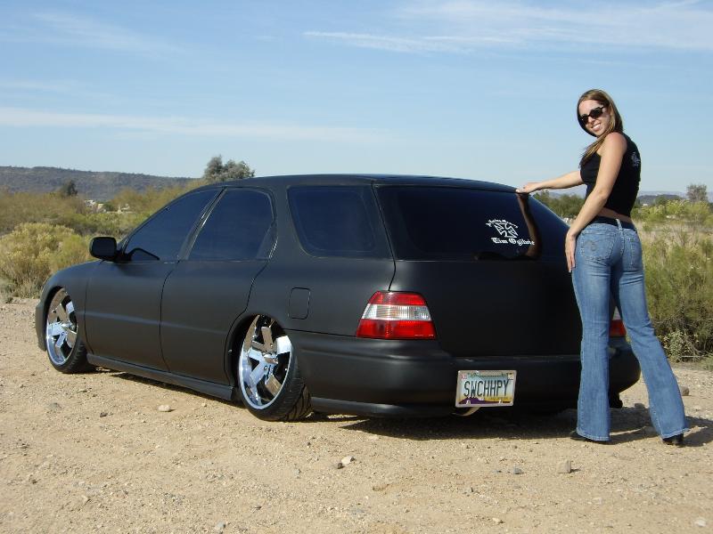Black Satin primer,Shaved Everything but gas door, shaved door handles, hatch,hatch sqirter, antenna, side moldings, squirters, emblems, bumper body lines, marker lights on front bumper,1 piece crome projection head lights. upper Trendz billet grill, Trenz billet lower, Stainless Steel Elipital Elliptical tube licence plate bracket that I made, dark ass tint! just got a rear bumper step made out of polished billet from the interior shop.