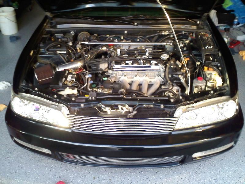h22 almost completely redone now!! intake, DC header back exhaust, polished valve cover,strut bars front and rear , gas saver
