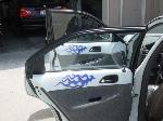 tweeded doors, headliner, dash and pillars all done by pirate customz and air brushed flames on door panels done by Air Creations trenz iron cross rear view mirror