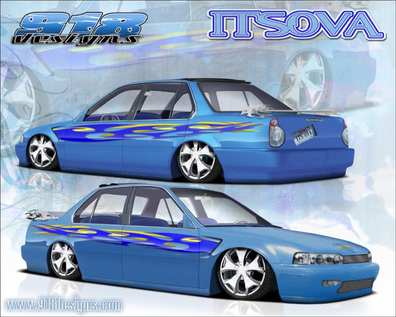 The body have every thing shaved like door handles, gas filler door, hood squirters,shved plate holes in bumper, power antenna hole, mirrors,tail lights, and shaved an frenched license plate box,bmw z-4 tail light conversion,led brake light.Custom made hood humps to cover bags. Apr aluminum dtm style wing painted and chromed with one off flamed ends ,