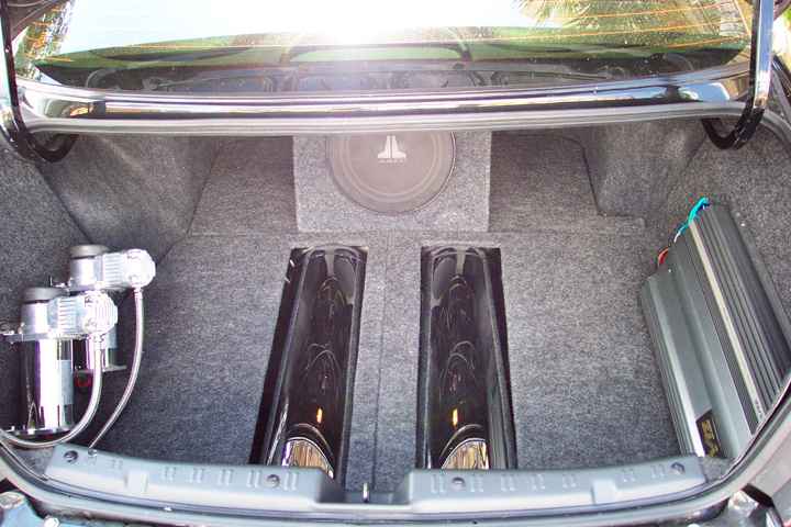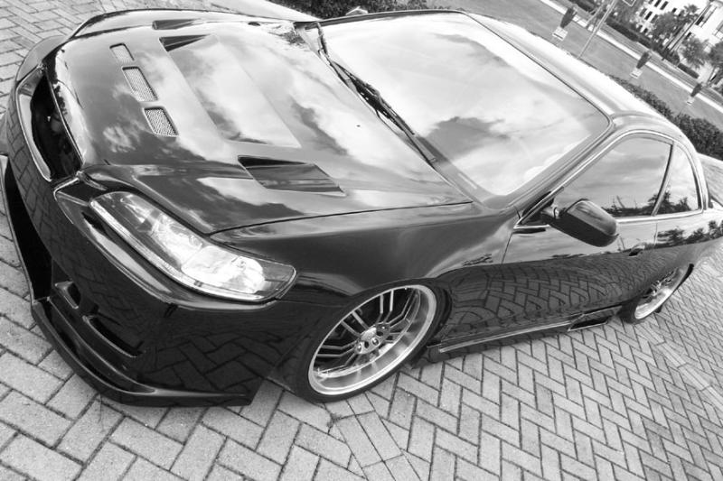 Ground Designs 2000 Black Widow Full Body Kit, Front side vents shaved, Aerogear Hood, Smoked Factory Taillights, Shaved Middle Taillight, Shaved Emblems, Black Housing Headlights, 15% Tint