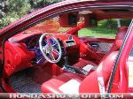 fiberglass dash and door panels and center console andrear panels,red acc carpet,diamond plate floor mats and accents,red leather headliner,2 tone leather seats,white face guages with red candy sprayed over them,billet steering wheel,3 tvs,dash is shaved of air vents and airbags