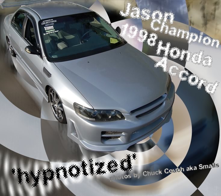 2nd in 4-dr division and best overall honda 2007 DUB show,3rd accord mild FREAK SHOW 06(dropjawmag.com)1st accord/legend class and best honda overall at L8EST CRAYZ 2006,2nd accord mild scrapin the smokies 06(hendersonville,nc),got a feature shoot with Gauge Magazine at the show also,1st accord mild southeast showdown 2006,got a feature shoot for elite streets magazine(southeast showdown 06) dropping the first or second issue of 2007,3rd place DUB Show 2006 4-dr mild,just got fully sponsored by vertical doors,dunlop tires,and a few other companies for the 2006 Hot Import Nights show,2nd Winter Heat 2002,some 1st place awards at local shows,2nd 2003 Bash at the Beach,3rd place SHO-N-GLO 2003,1st place NOPI Southeastern N ationals, 2nd place 2004 Ground Zero Show,2nd place accord wild and long distance award MARDI GRAS NATIONAL 2005,tied for 1st 2005 Southestern Showdown(Anderson,S.C.),Aug.2005 feature in dialD magazine