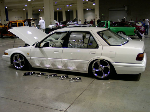 Shaved emblems, locks, antenna, washer squirters. White vinyl phantom top.