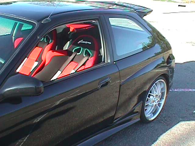Simota Racing Seats, Weapon R four-point harness',& Carbon fiber dash kit.