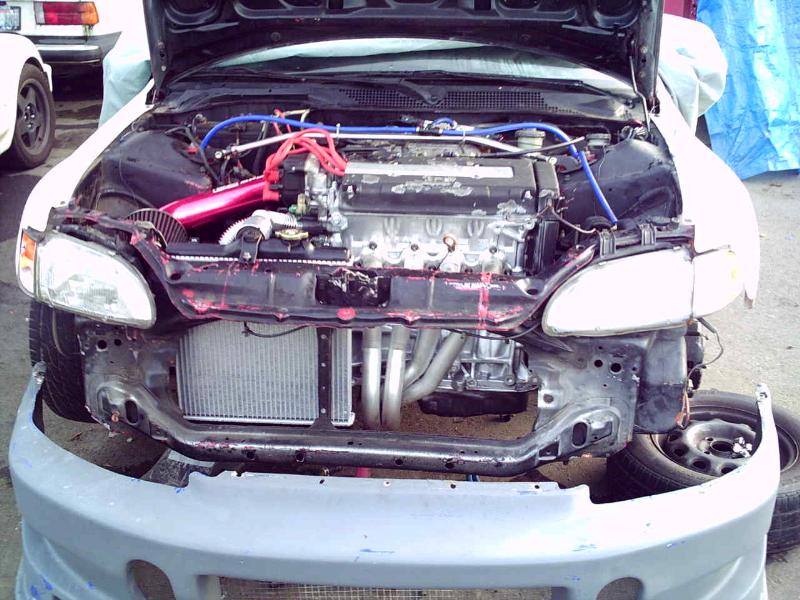B16 with gsr tranny, Exedy organic clutch, Findanza racing flywheel, dc sports header, Dc sport intake, OBx Exhaust, Obx 10.3mm spark plug wires, Ngk Iridium spark plugs, Custom programmed and chipped ecu, Apc short shift kit.