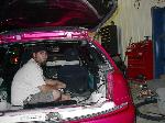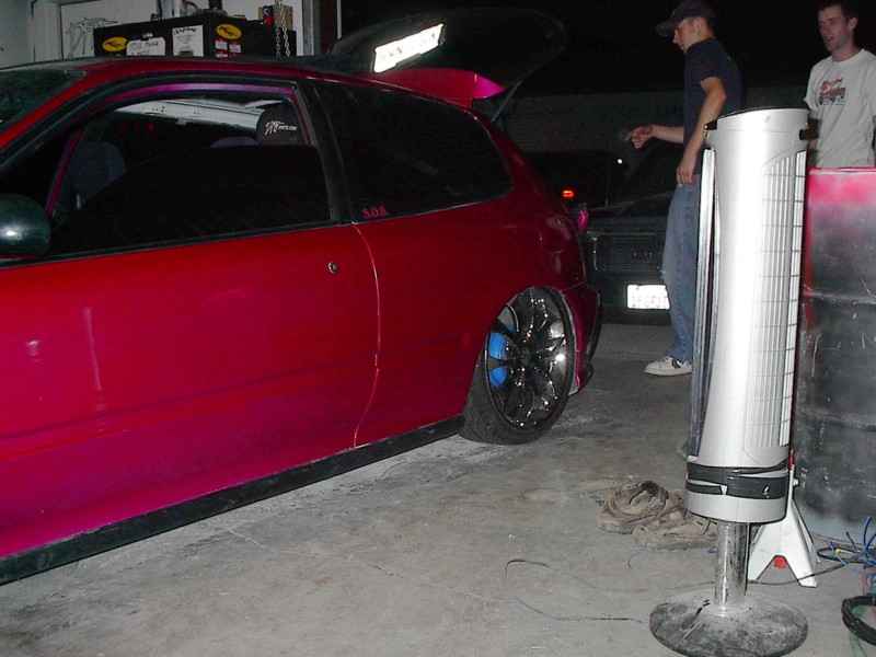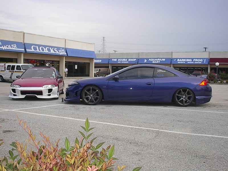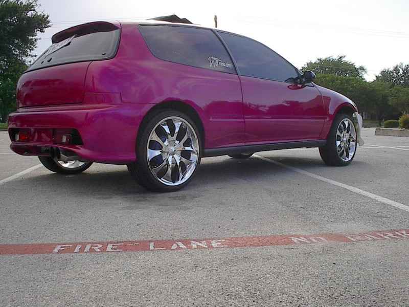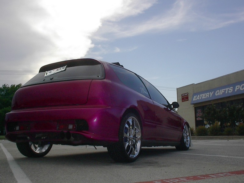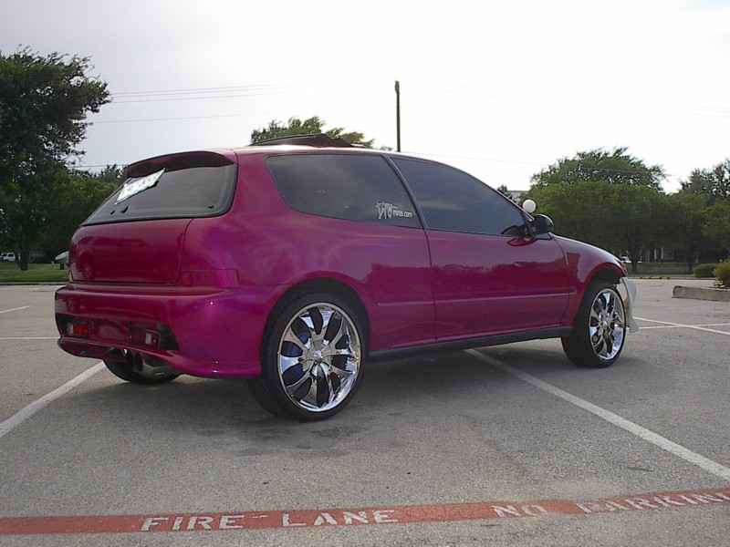 4cyl. nothing special with AEM intake,9mm sparkplug wires with some painted accessories chrome header and downpipe
