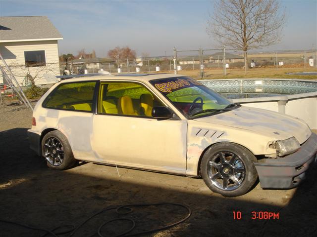 Shaved door handles,body line, roof lines,gas door,emblems,hood squirters,antenna,stock spoiler, molded on buddy club side skirts, buddy club rear body kit,z3 fenders, custom sun roof, hood pins,yellow window tint, alum wing on roof.