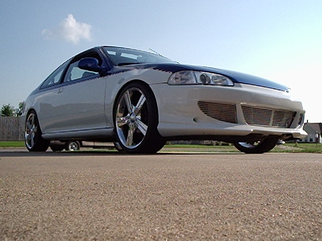 full custom 2-tone paint with tribal stripe dividing the colors. Wingswest front bumper. Shaved bodyline, hood squirters, trunk and custom rear bumper.