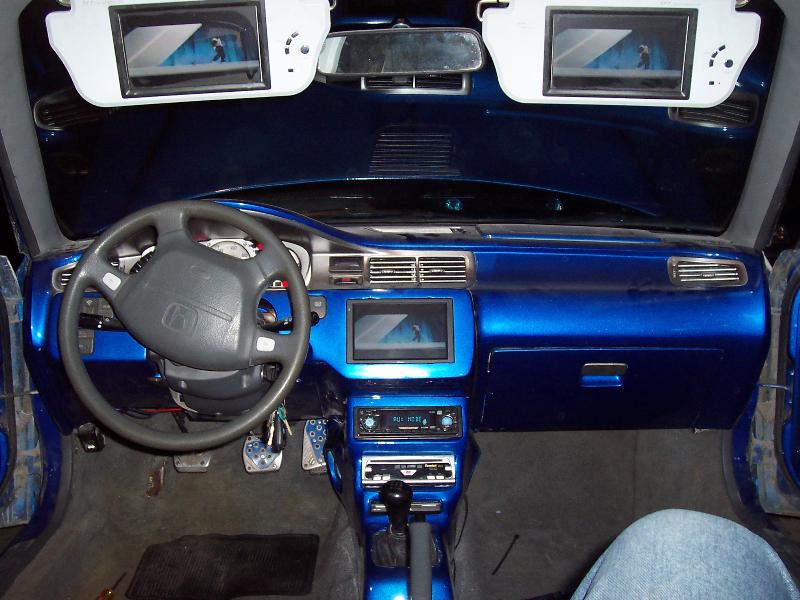 Reverse indeglo gauges, 3D billet aluminum gauges cluster, indeglow foot pedals, 4 neon tubes that are hidden one under each side of the dash and one under each seat, relocated heater controls to glove box, radio relocated to were the ash tray use to be, smoothed out all of the texture on the dash and door panels and painted then Viper blue to match the exterior, smoothed in 8" holes for subs in the back door panels, soon to have four Tenzo R Rally seats.