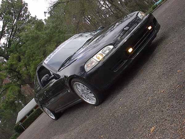 Black exterior, side markers w/ blue bulbs, Denji Projector headlights, foglights, APC clear corners with blue strobes, and Deeo mirror tint..
