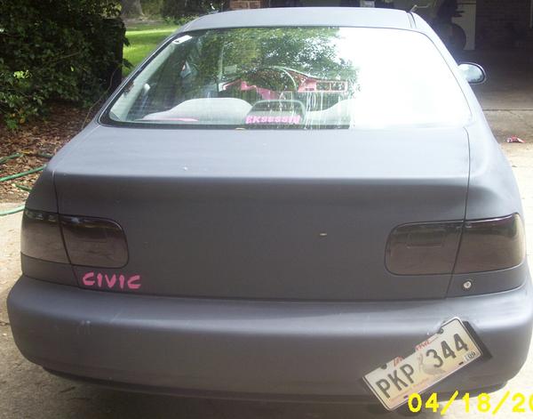 Shaved trunk, crooked license plate, smoked tail lights, ALT 17' racing rims, 205/35 tires, coil overs, 3 trail horns, 7 gallon air tank