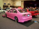 Pink Passion with tri-layer pearl, shaved rear door handles, fiberglass body kit, z3 fenders, projection headlights, Euro tails, Pink Neon underbody and in fender inserts
