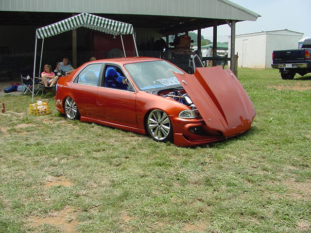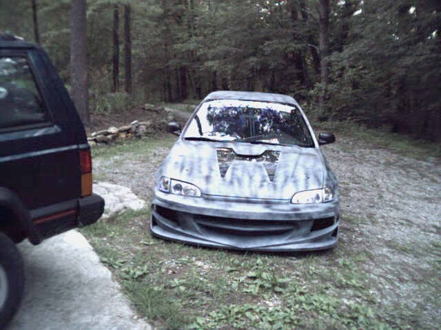 Primer (I like mine with no shine), everything shaved except taillights, gas door relocated into taillight, molded rear bumper, VIS Xtreme GT front bumper