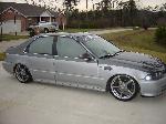 Two-Tone Pewter and Silver Mist, Carbon Fiber Hood, Carbon Fiber M3 Mirrors (Due to some punk ass who broke off my stock ones), Shaved Handles, Shaved Moulding, Shaved Inner Tails, Shaved License Box,Shaved Emblems, Spoon Style Fenders, 1 Piece Black Halo Projectors, Black Altezzas, Mesh Grill, Plasma Glow Underbody Kit, Mirror Tint, 45lb Poppers